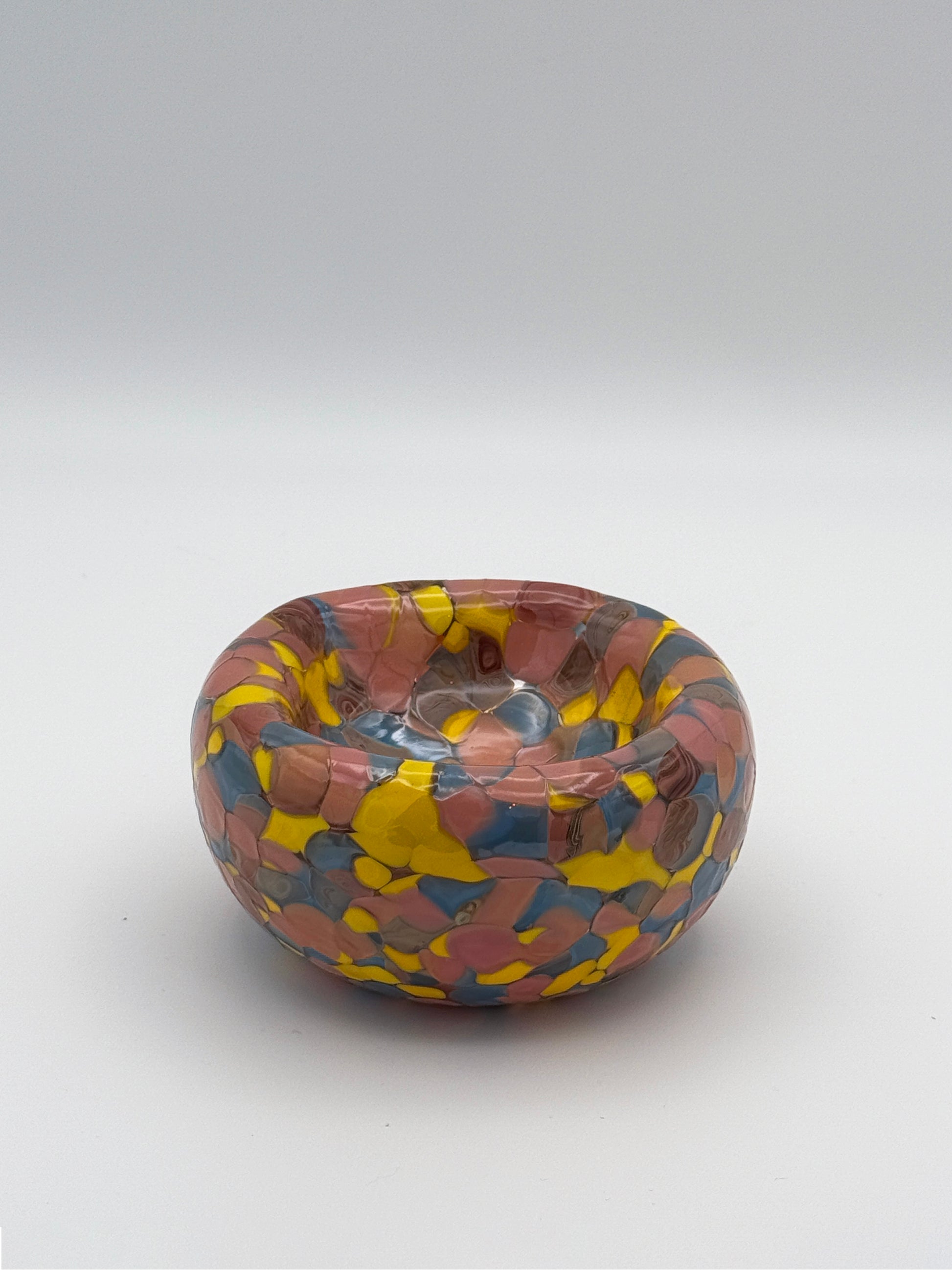 Please note that the bowl you receive may not be the exact one pictured, but a unique piece with a similar design, as each is one of a kind. This vibrant glass bowl, inspired by Jelly Baby candies, is a delightful fusion of color and artistry. A truly one-of-a-kind addition to your home—perfect for holding a pair of earrings, a ring, or other small treasures!