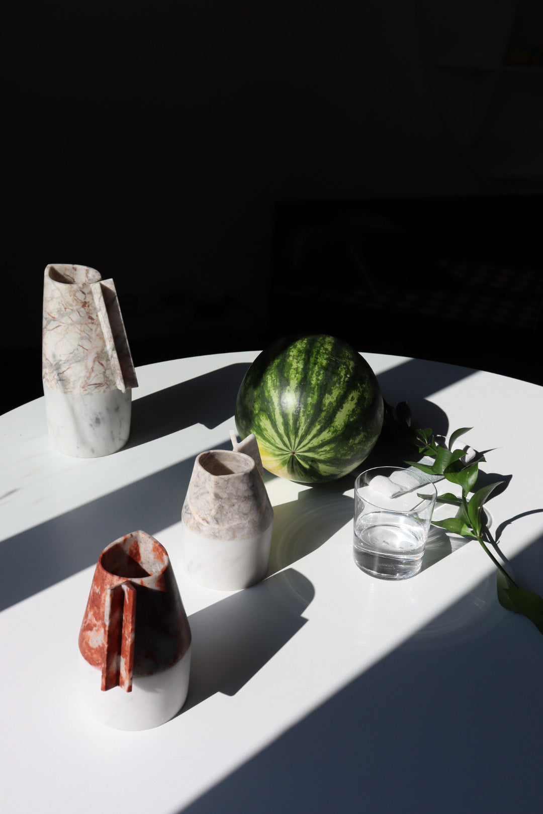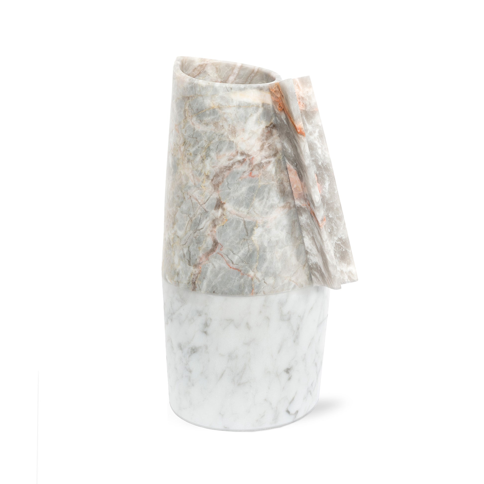An artisanal masterpiece. Hand-carved from highest quality Fior di Pesco Carnico and Carrara Gioia marbles, it is ideal to serve fresh water and juices. Each carafe is hand-made and is unique, as the stones it comes from. Versi carafe big is part of the tableware collection in precious marbles, featuring Patricia Urquiola’s unique creative sign.